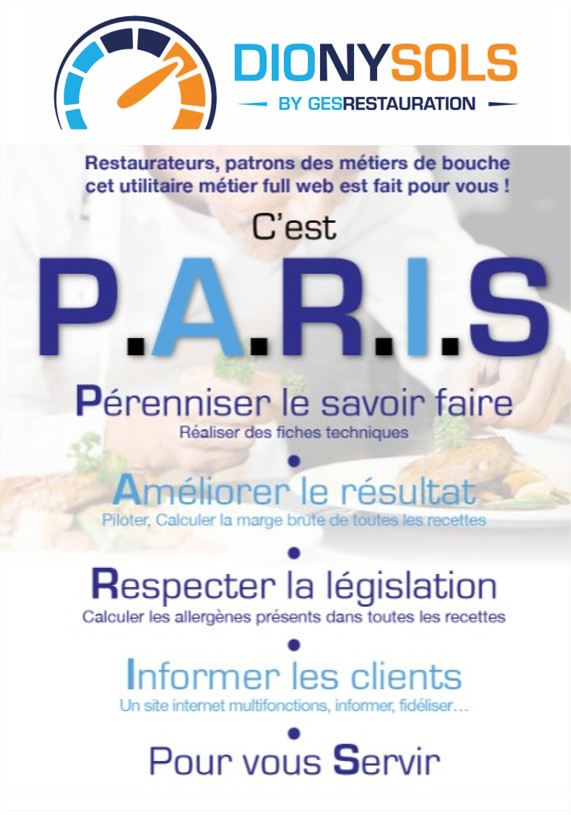 DionySols, anciennement connu sous le nom de GesRestauration, est une solution complète de pilotage et de gestion pour les professionnels de la restauration et des métiers de bouche. Que vous soyez patron d'un restaurant, boulanger, pâtissier, boucher, charcutier, traiteur, poissonnier, brasseur, torréfacteur ou tout autre acteur de ces secteurs, DionySols peut vous accompagner dans votre activité.